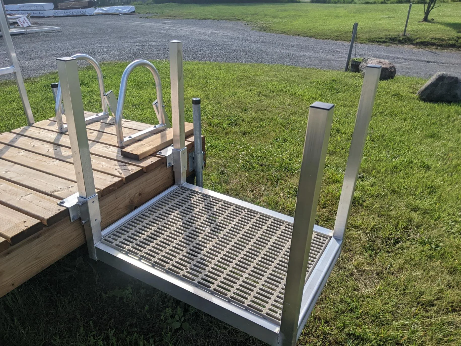 Our kayak landing costs $700 and is attached to the side of your dock and is fully adjustable vertically to match the fluctuations of your water level. The landing allows you to easily get in and out of your kayak or canoe.